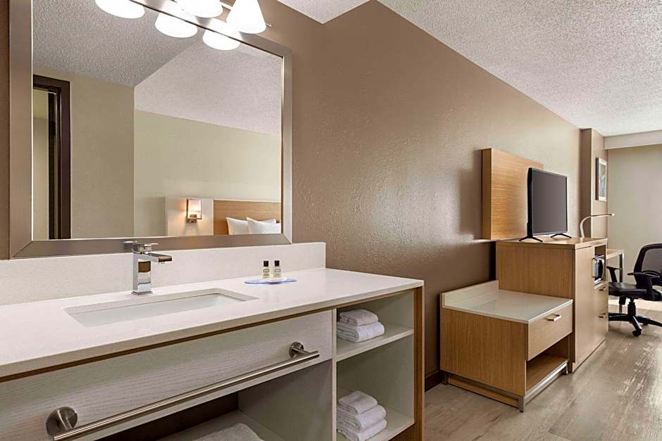 This room offers handicap-accessible amenities, including an adapted bathroom with safety grab bars.